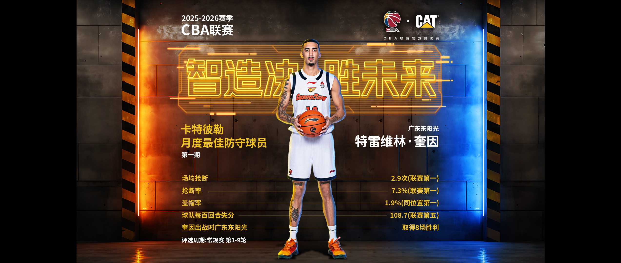 特雷维林·奎因当选2025-2026赛季CBA联赛卡特彼勒月度最佳防守球员(第一期)